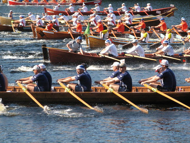 Nykyaikaiset kirkkoveneet rakennetaan edelleen puusta, mutta niissä on pyörillä olevat liikkuvat penkit. Se tarkoittaa sitä että suurin työ tehdäänkin jaloilla eikä käsillä tai selällä. Tykkään lajista sen vuoksi että siinä koko kroppa saa todella paljon hyvää liikuntaa. Yleensä harjoituksemme ovat kestäneet sellaisen 1,5 tuntia ja varsinkin tuulisen sään sattuessa, tuntee liikunnan vaikutukset koko kropassaan! Eilen oli aika mukava sää. Ei tuullut paljoa ja aurinko paistoi mukavasti, mutta ei enää yhtä kuumasti kuin päivällä.